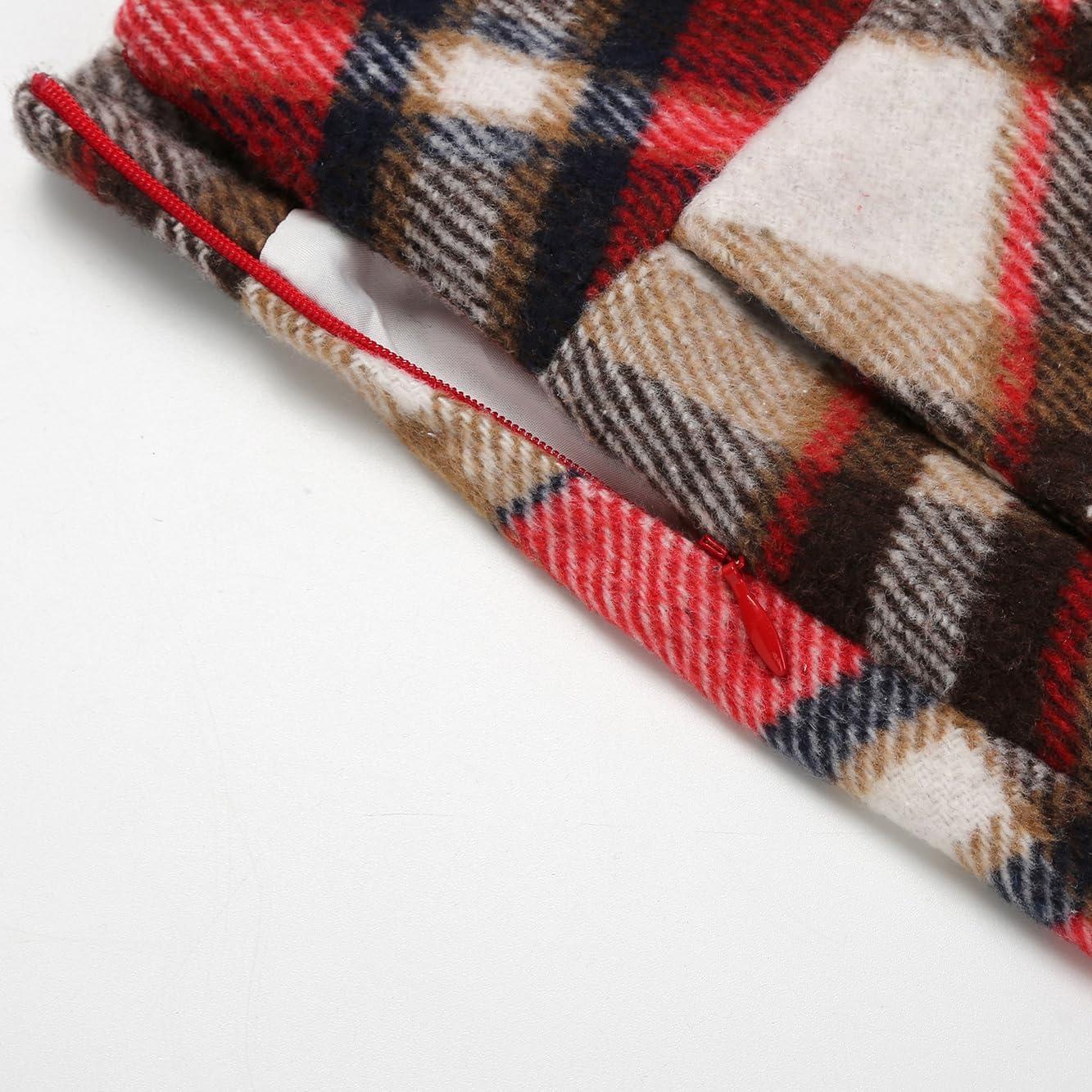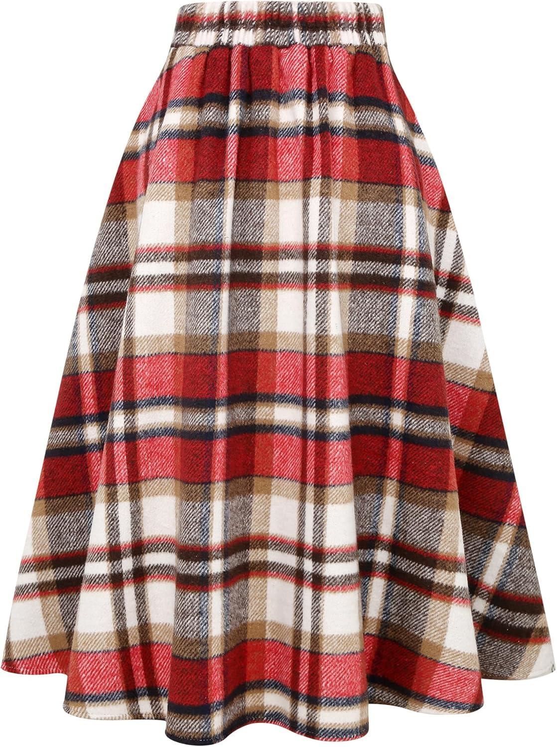 IDEALSANXUN Women’s Fall Winter High Waisted Wool Plaid A-line Long Skirt(Plaid Grid Black)