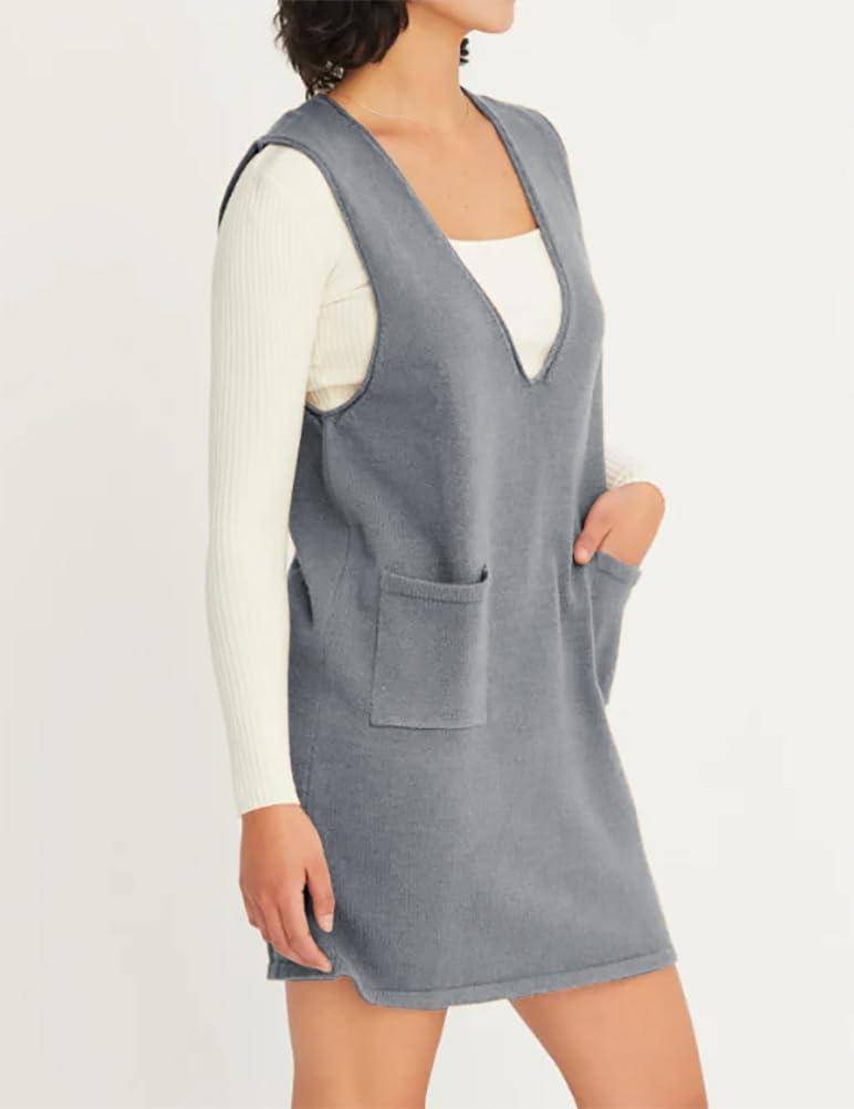IDEALSANXUN Womens V Neck Sweater Vest Dress Fall Winter Sleeveless Sweater Pinafore Dress(Grey)
