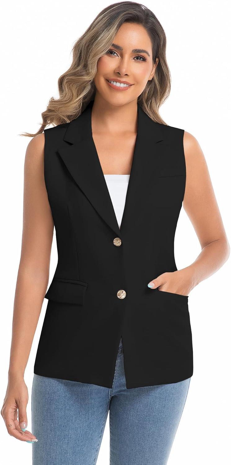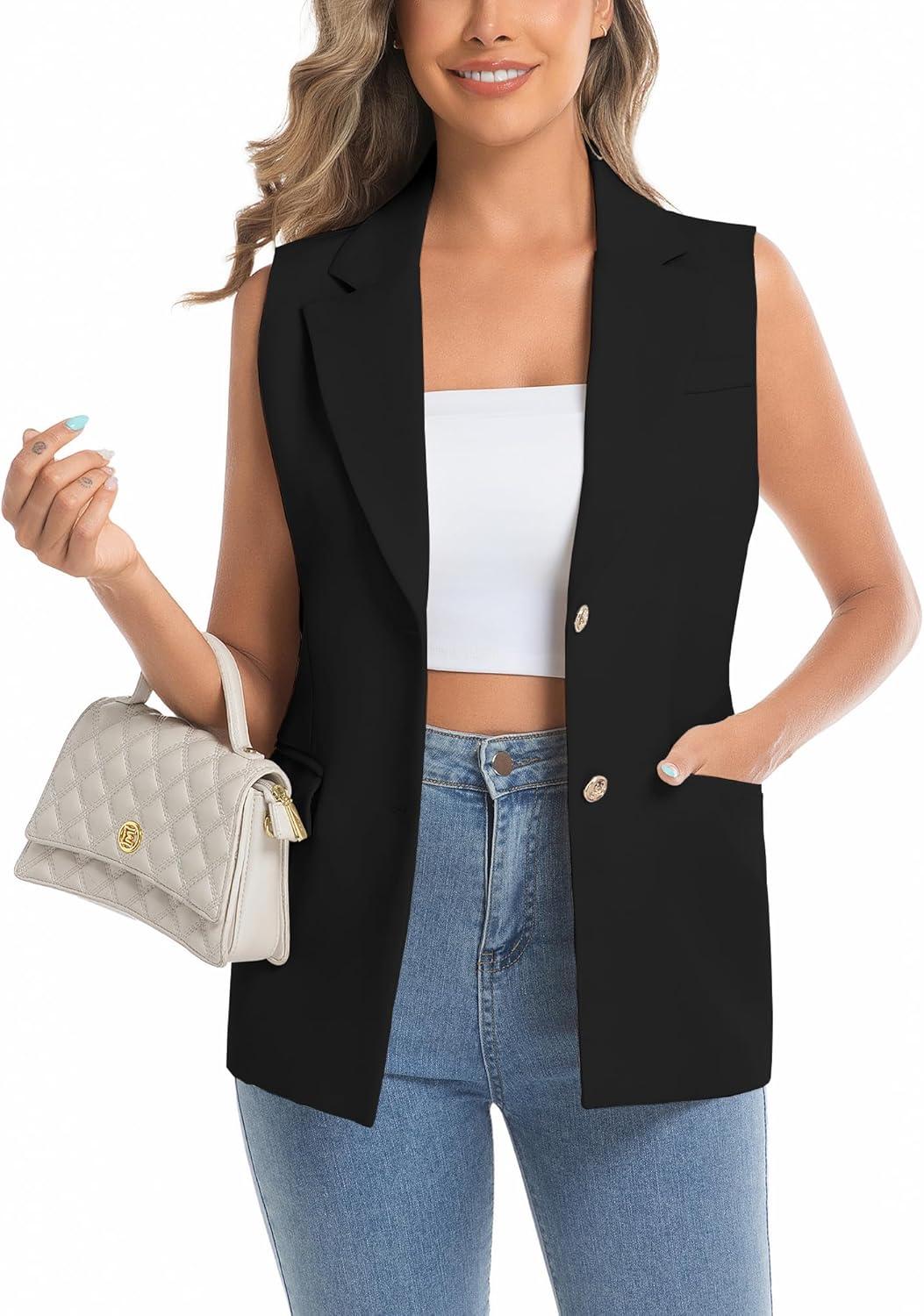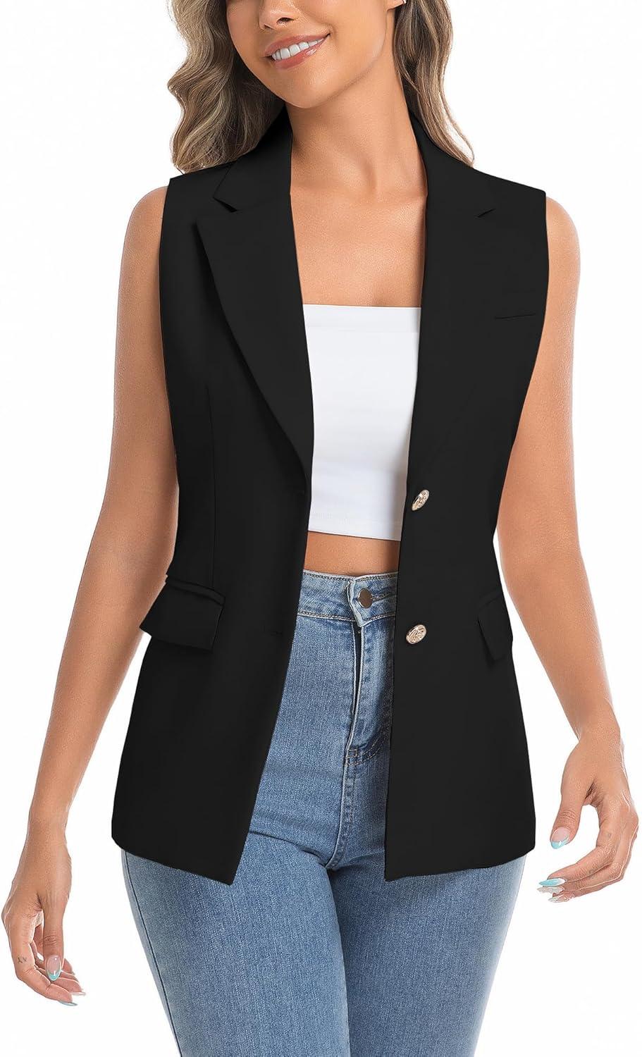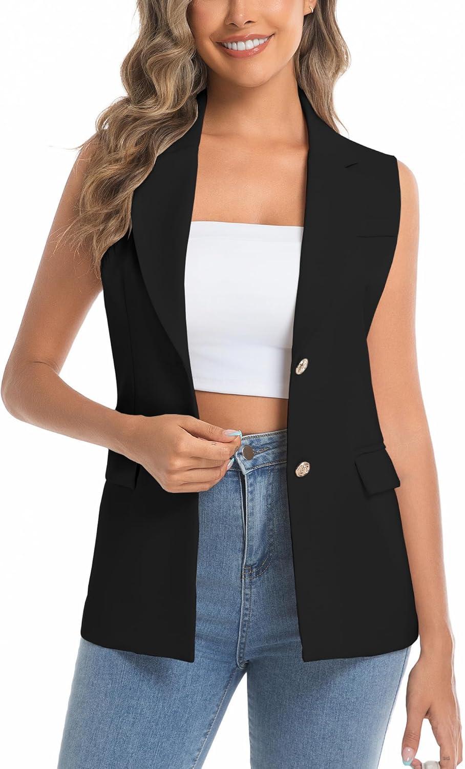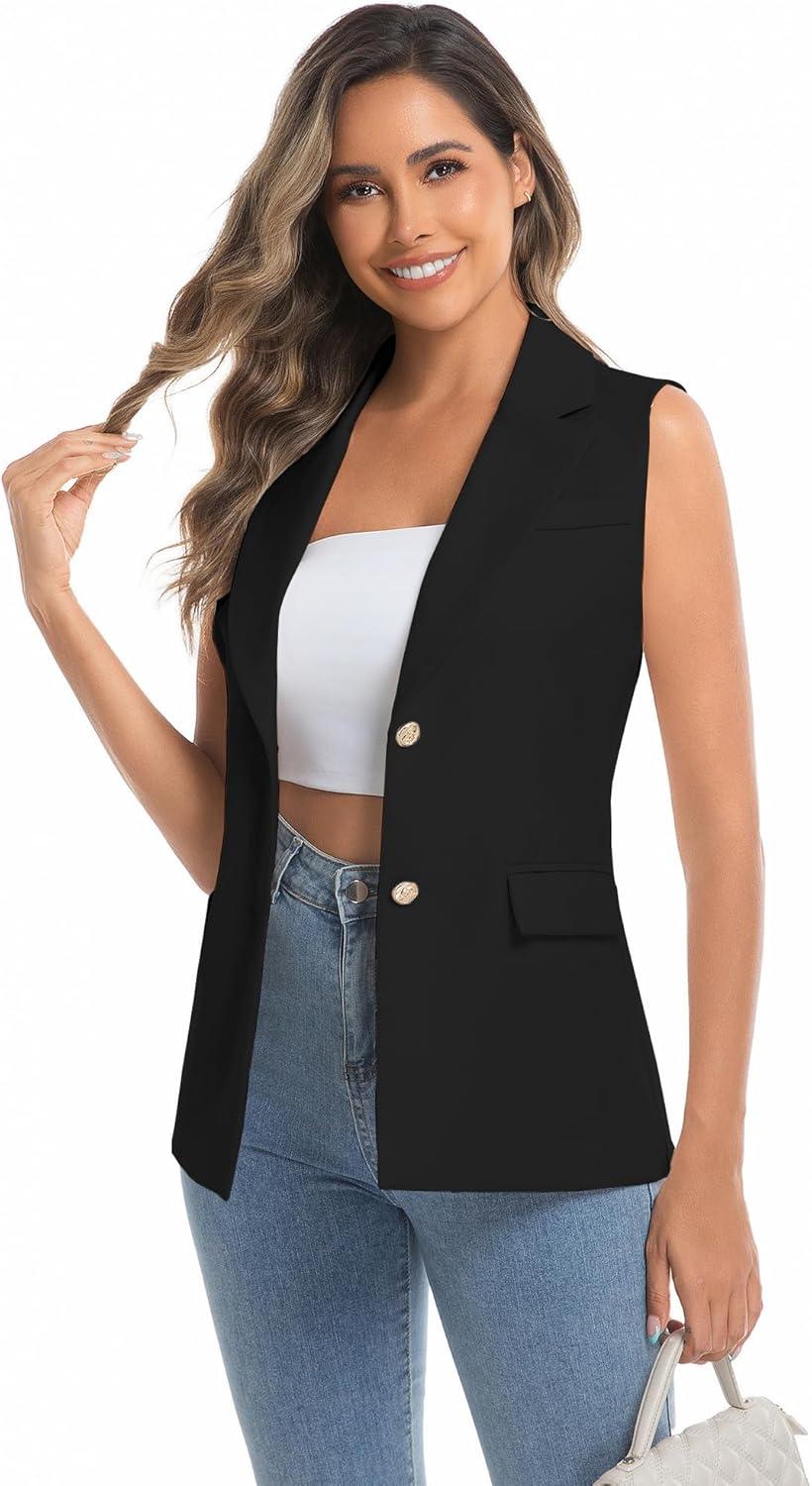 IDEALSANXUN Womens Vests Fashion Casual Dressy Sleeveless Blazer Suit Vest Tops(Black)