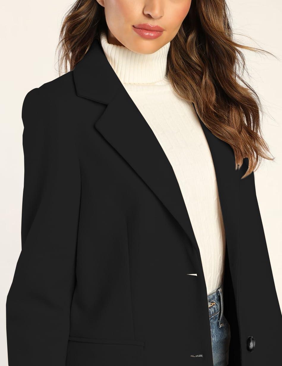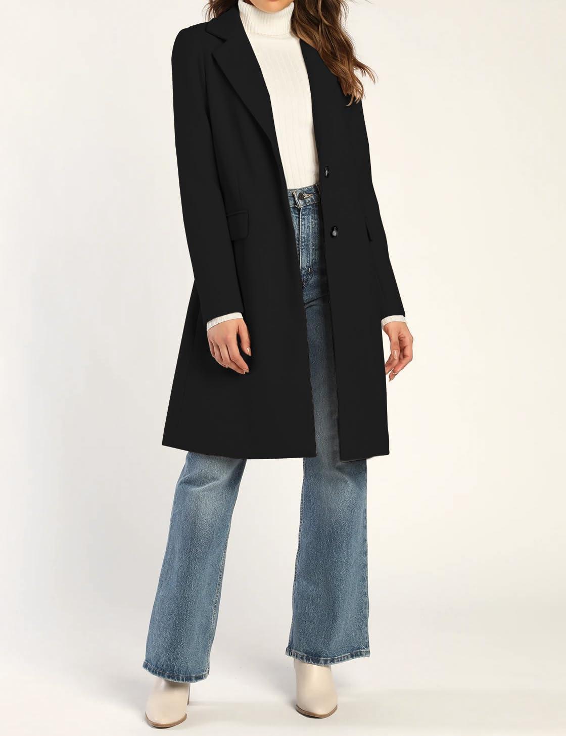 IDEALSANXUN Womens Wool Coats Fall Winter Notch Lapel Long Trench Coat Peacoat Blazer Jackets(Black)