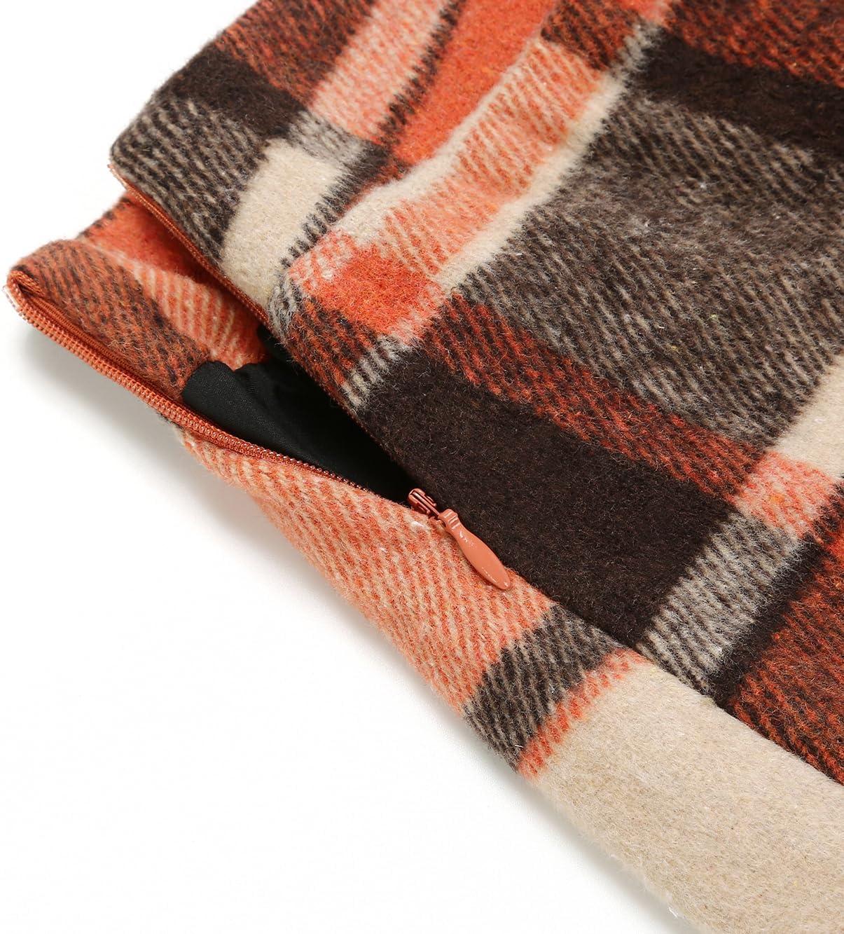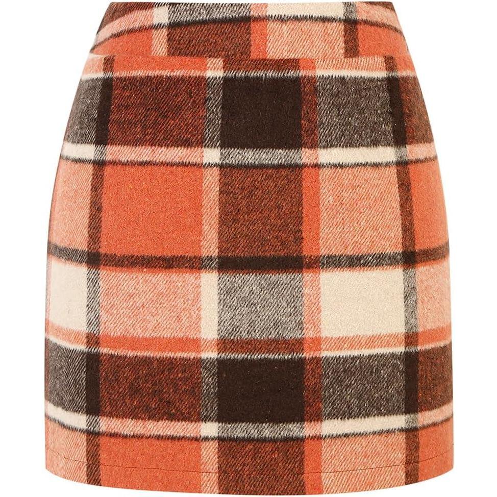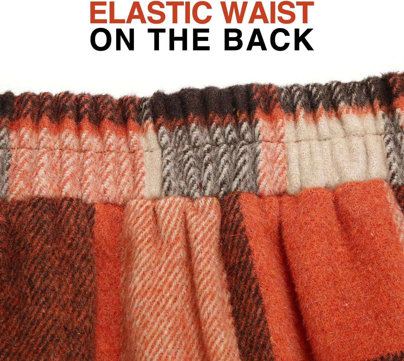 IDEALSANXUN Womens Wool Plaid Mini Skirt Fall Winter High Elastic Waist Short Pencil Skirt(Orange)