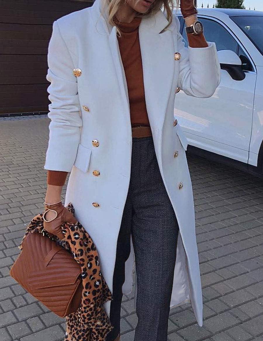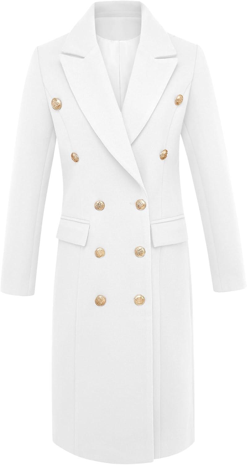 IDEALSANXUN Wool Coats for Women Fall Winter Dress Peacoat Long Trench Coat Double Breasted Blazer Jackets Overcoat(White)