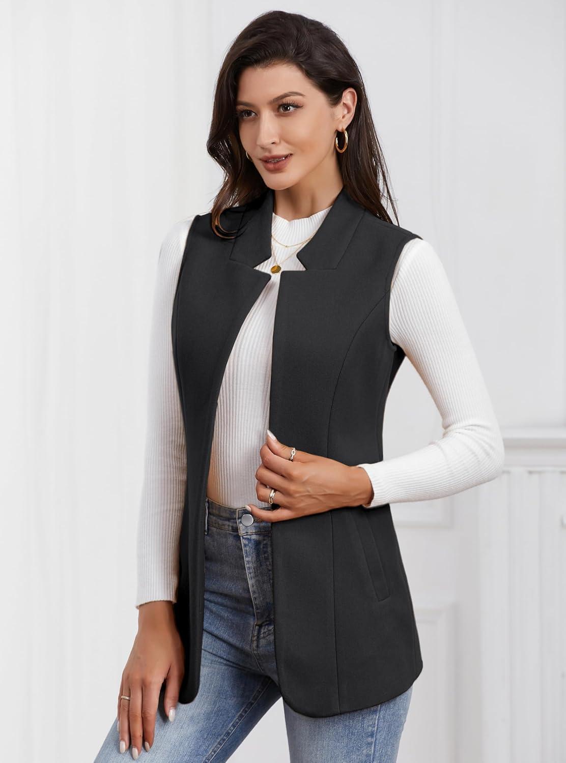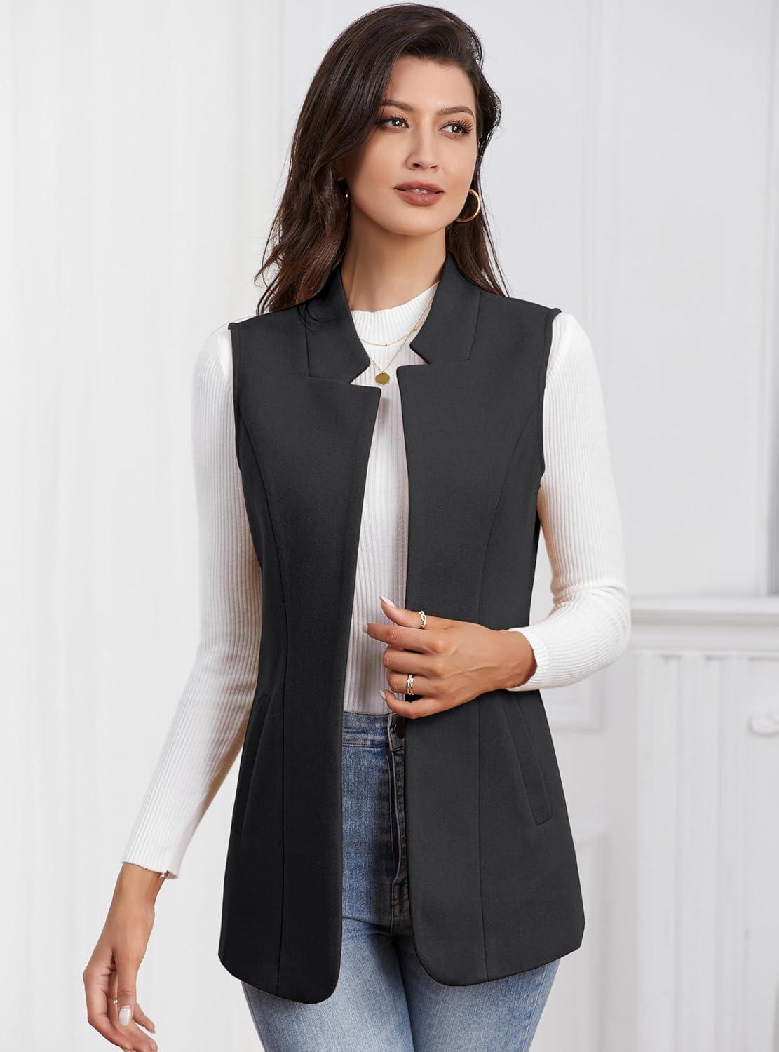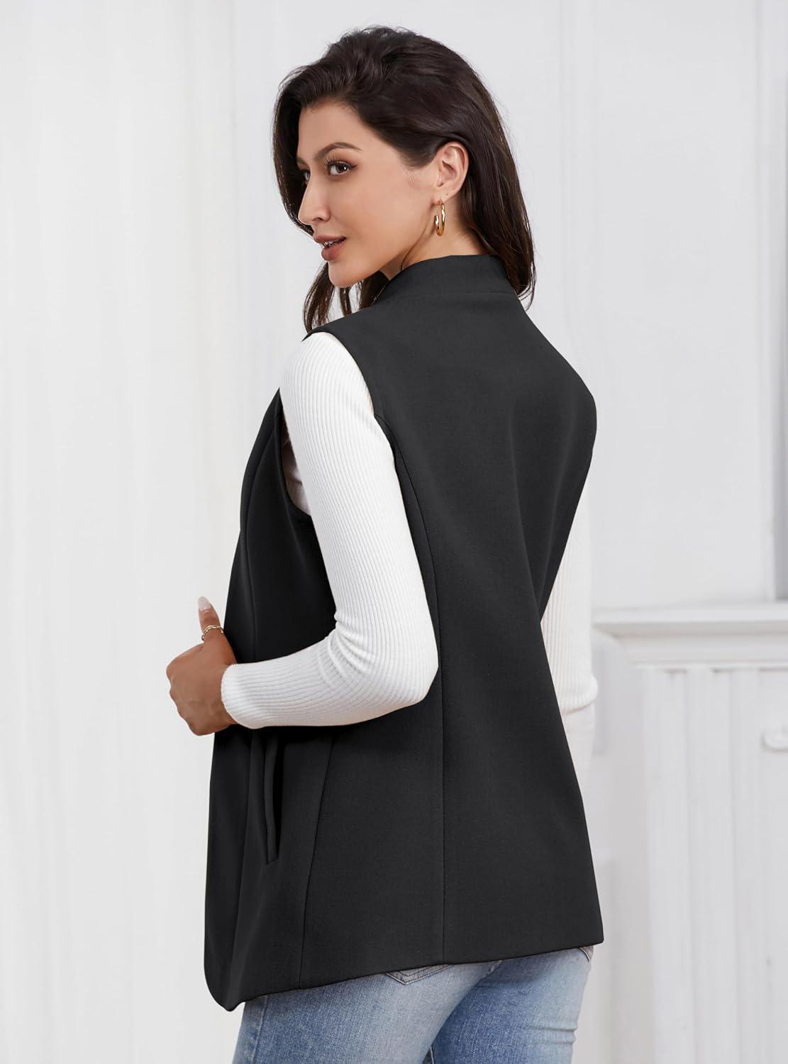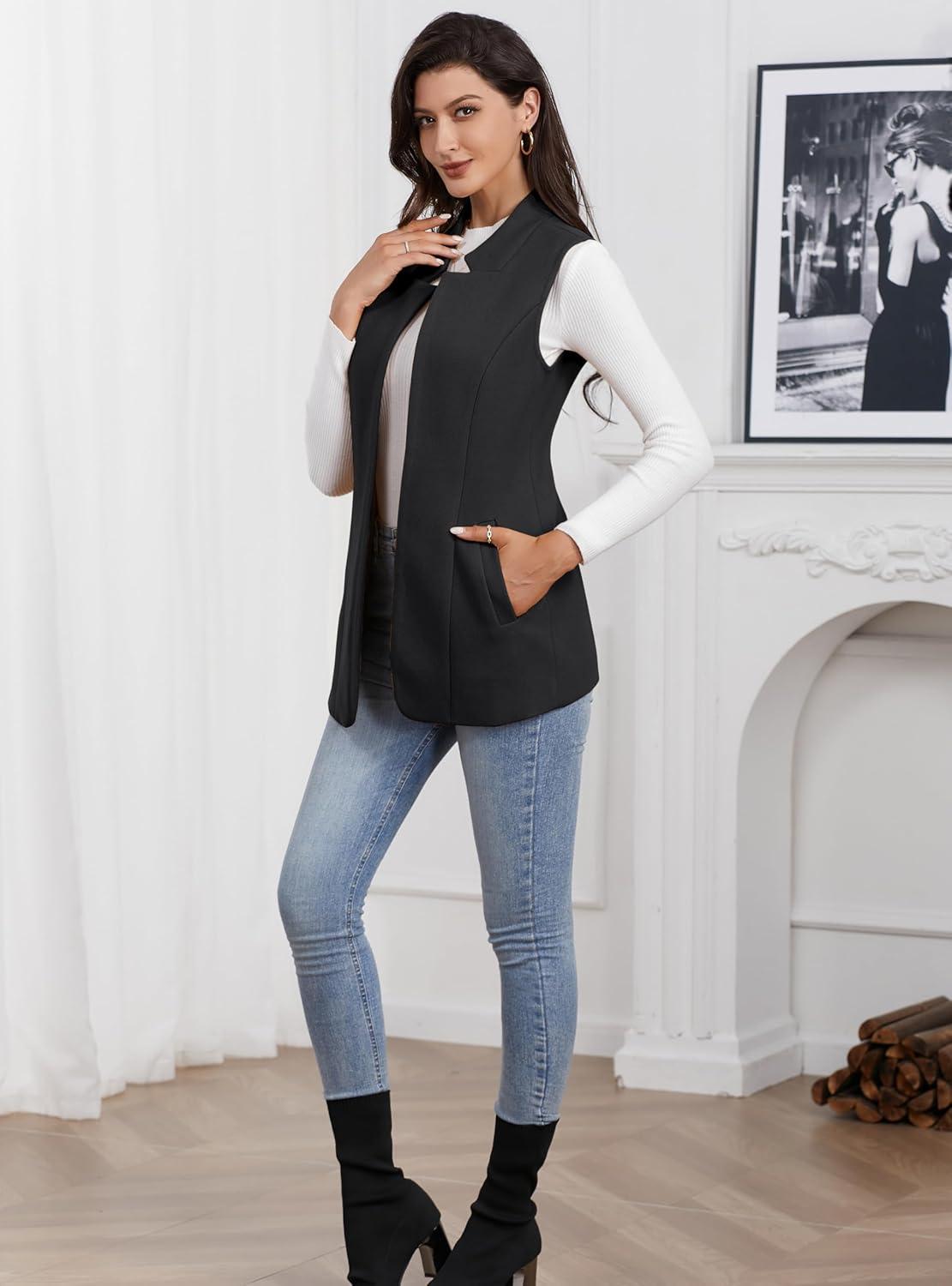 IDEALSANXUN Wool Long Vest for Women Sleeveless Blazer Fall Winter Jackets Trendy Open Front Cardigan Trench Coat Outerwear(Black)