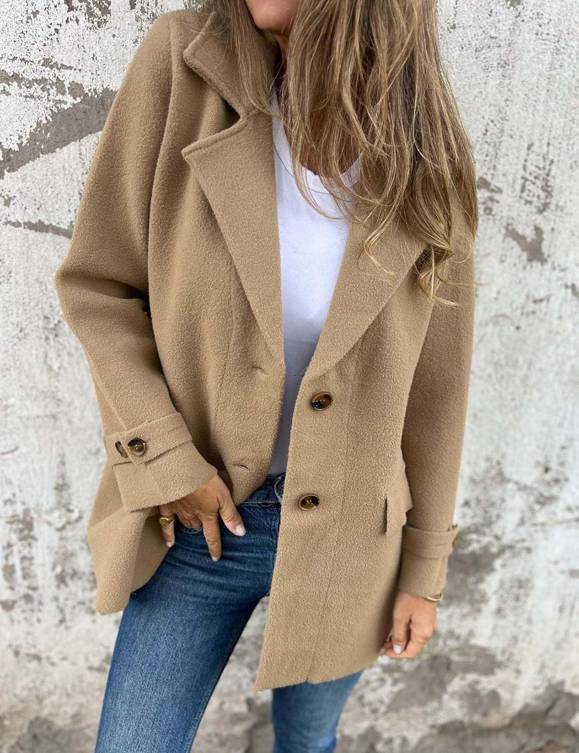 IDEALSANXUN Wool Pea Coats for Women Fall Winter Classic Mid Length Peacoat Trench Coat Blazer Jacket(Khaki)