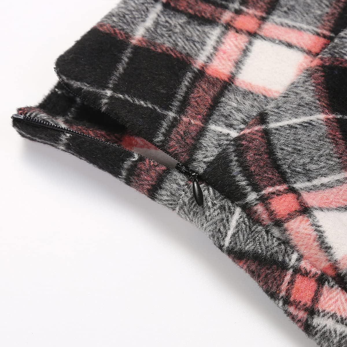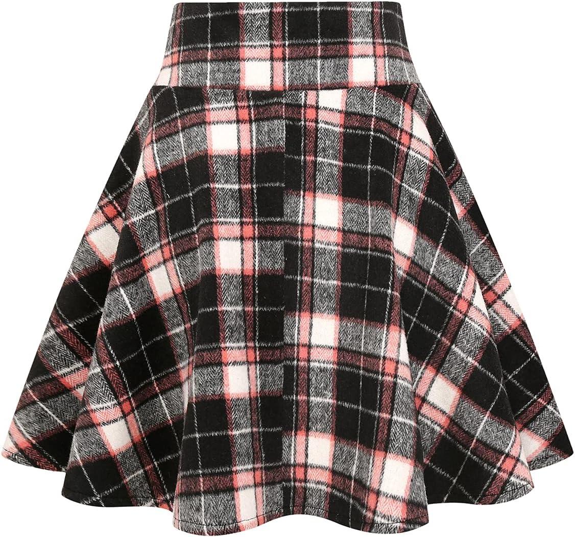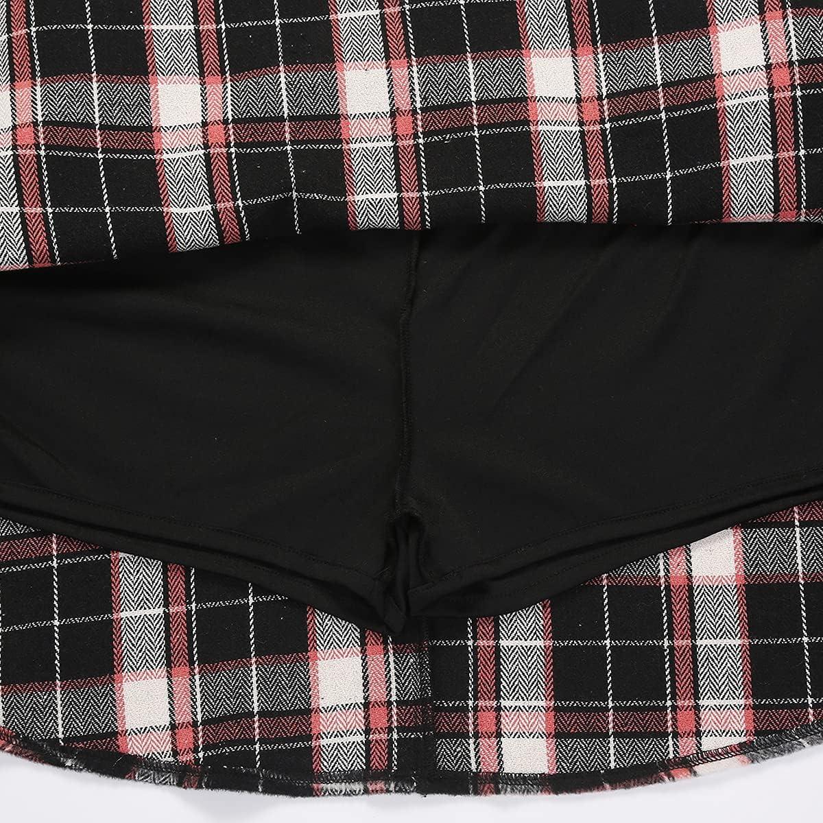IDEALSANXUN Wool Plaid Mini Gothic Skirts for Womens High Waist Lace Up Short Pleated Skater Skirts(Pink&black)