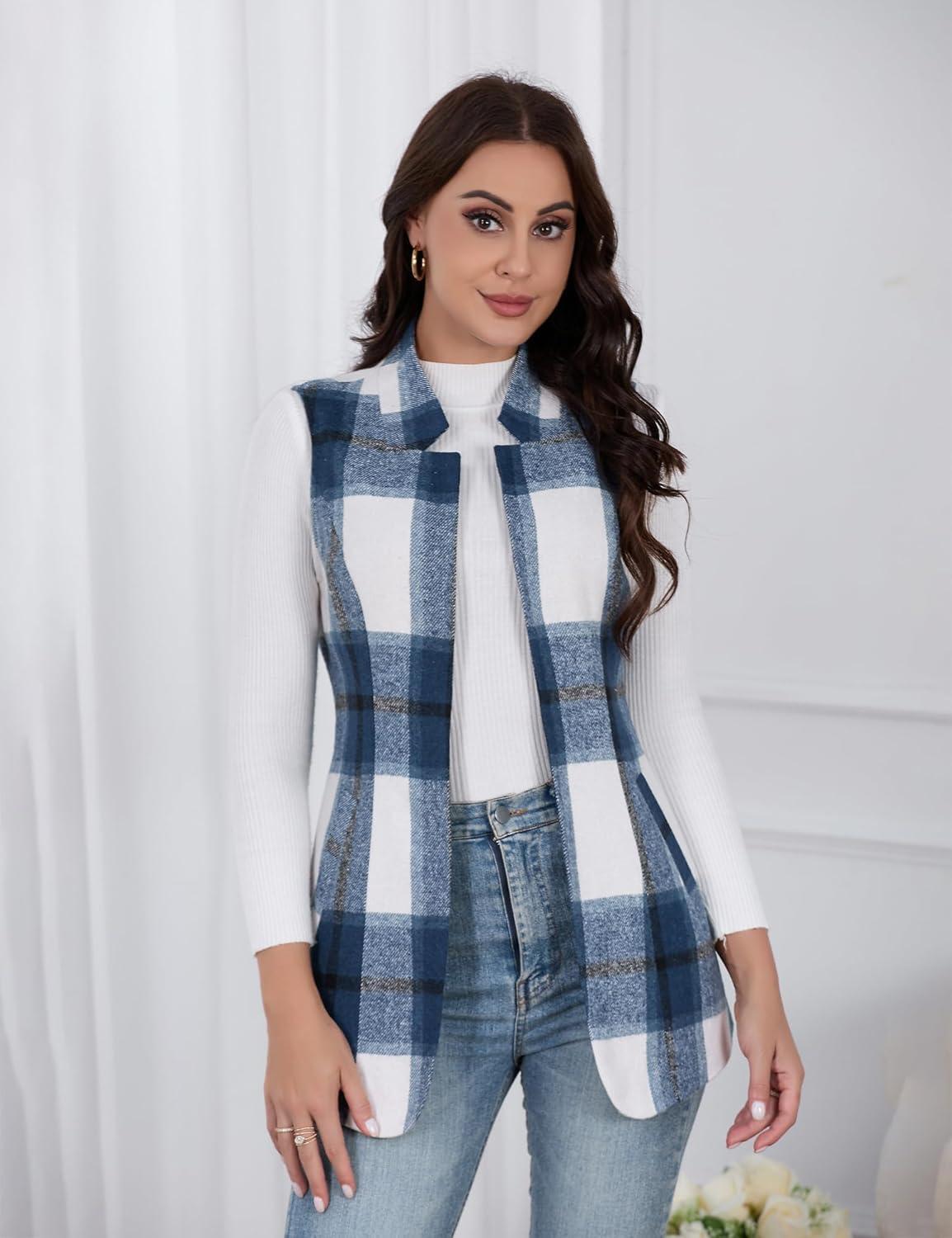 IDEALSANXUN Wool Plaid Vest for Women Fall Winter Coat Sleeveless Blazer Jackets Casual Outwear Open Front Cardigan Top(Wine)